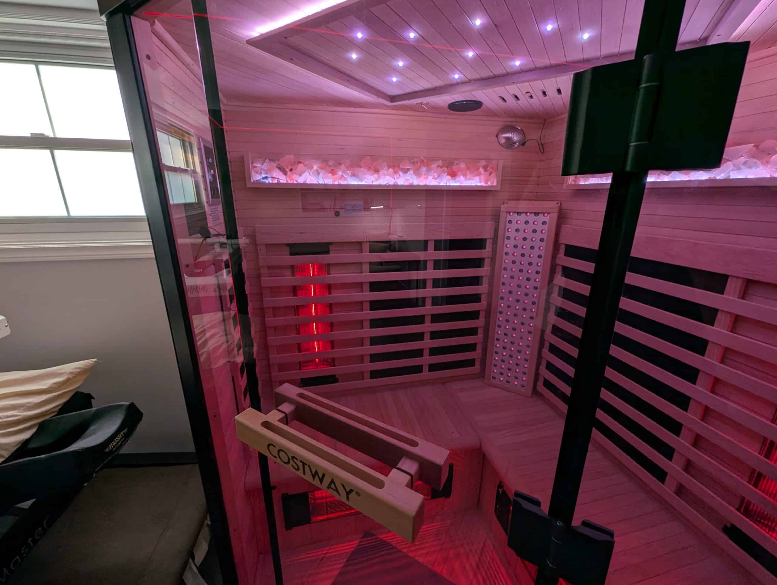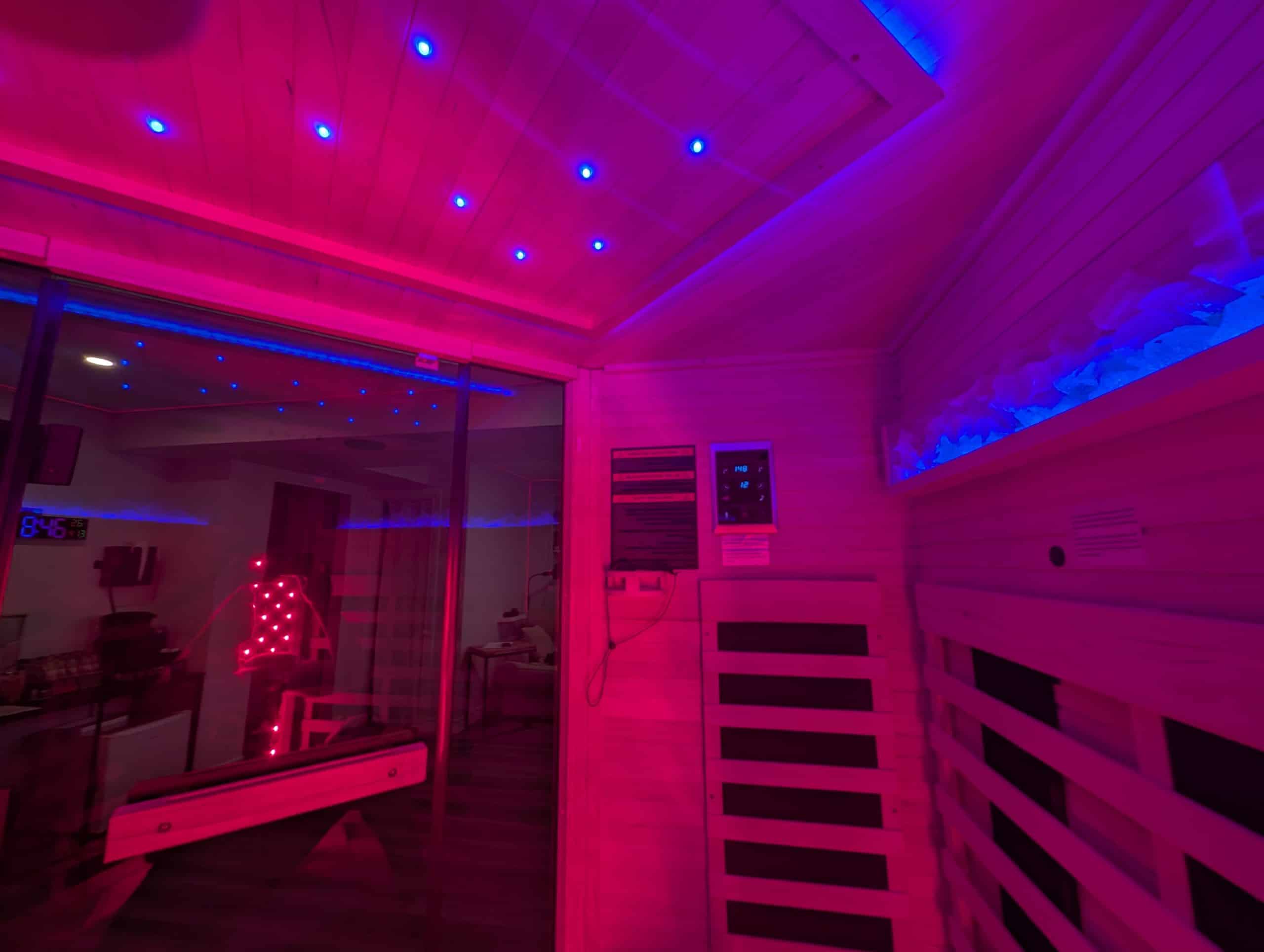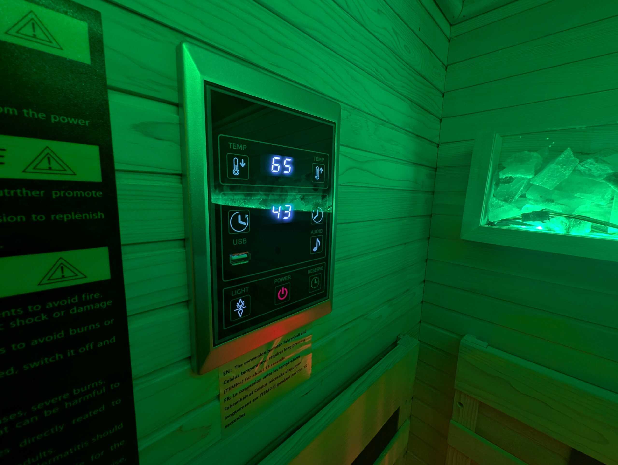 - Ambient atmosphere lighting to set the mood for your recovery session (sauna)