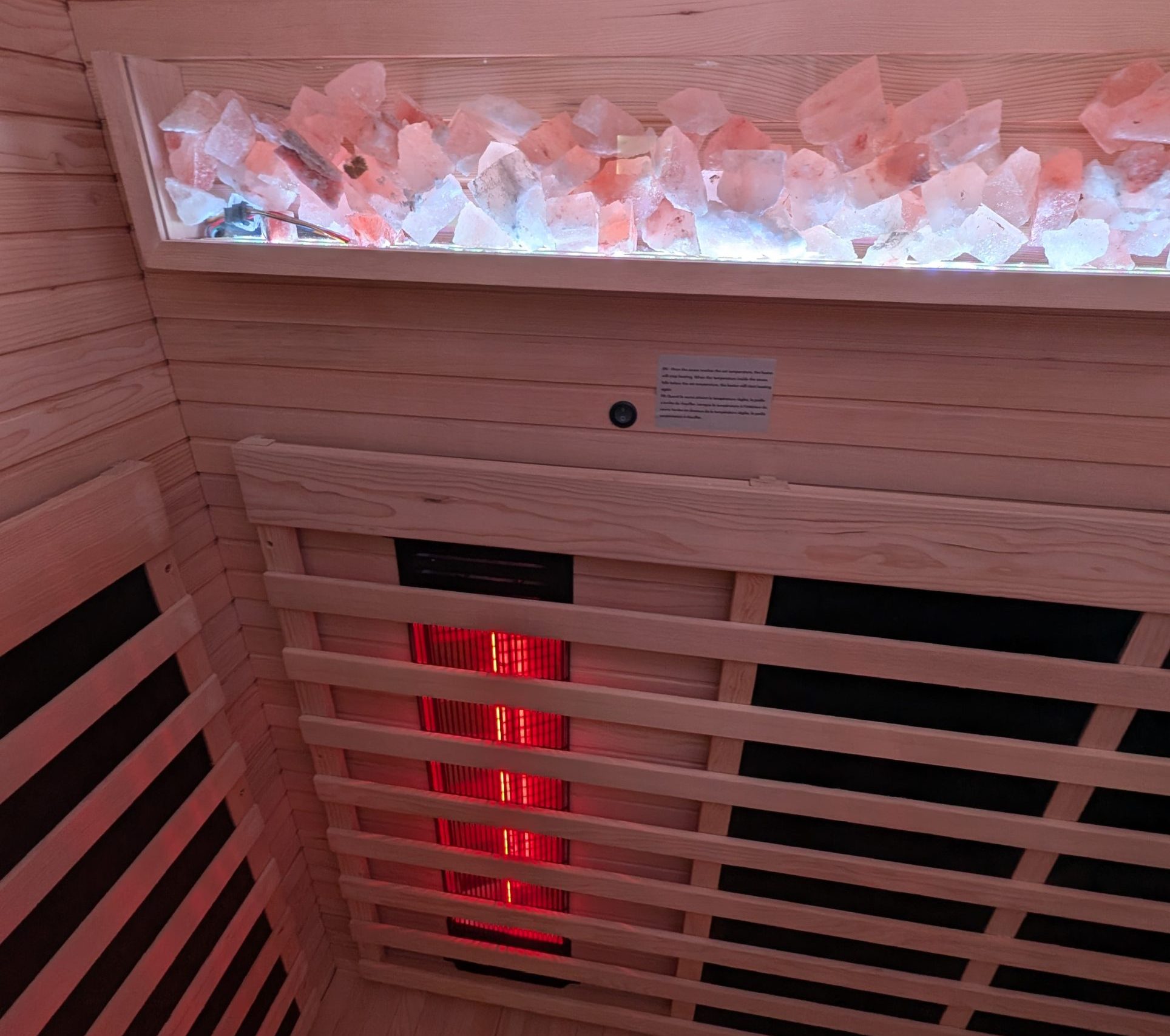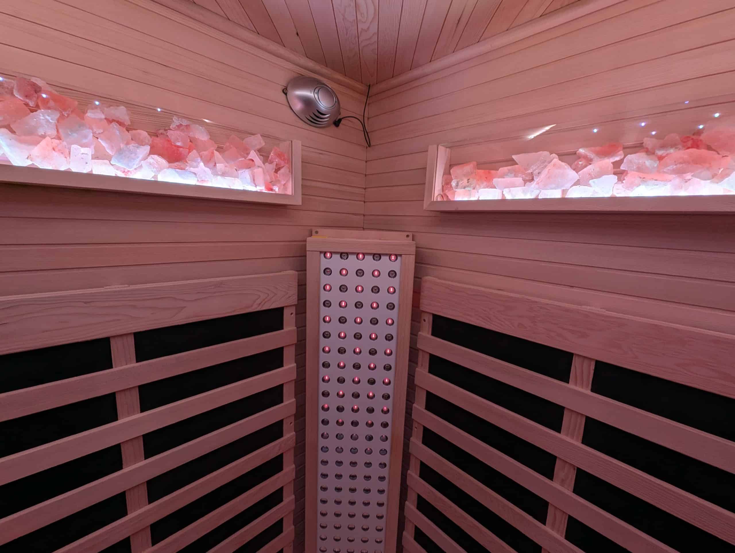 Our infrared sauna is enhanced with Himalayan salt bars, a negative ion air purifier, and an ozone and anion purifier, which provide additional therapeutic benefits: