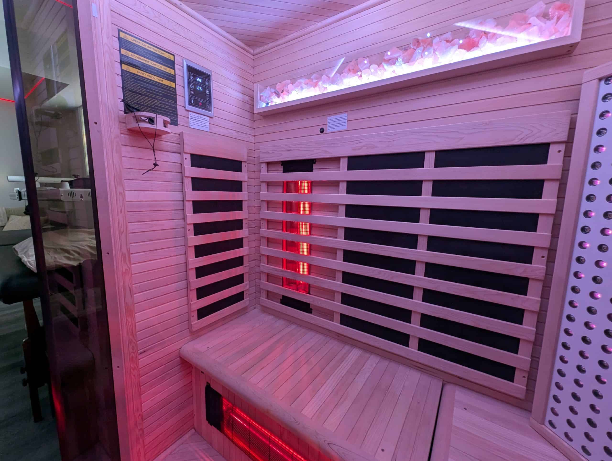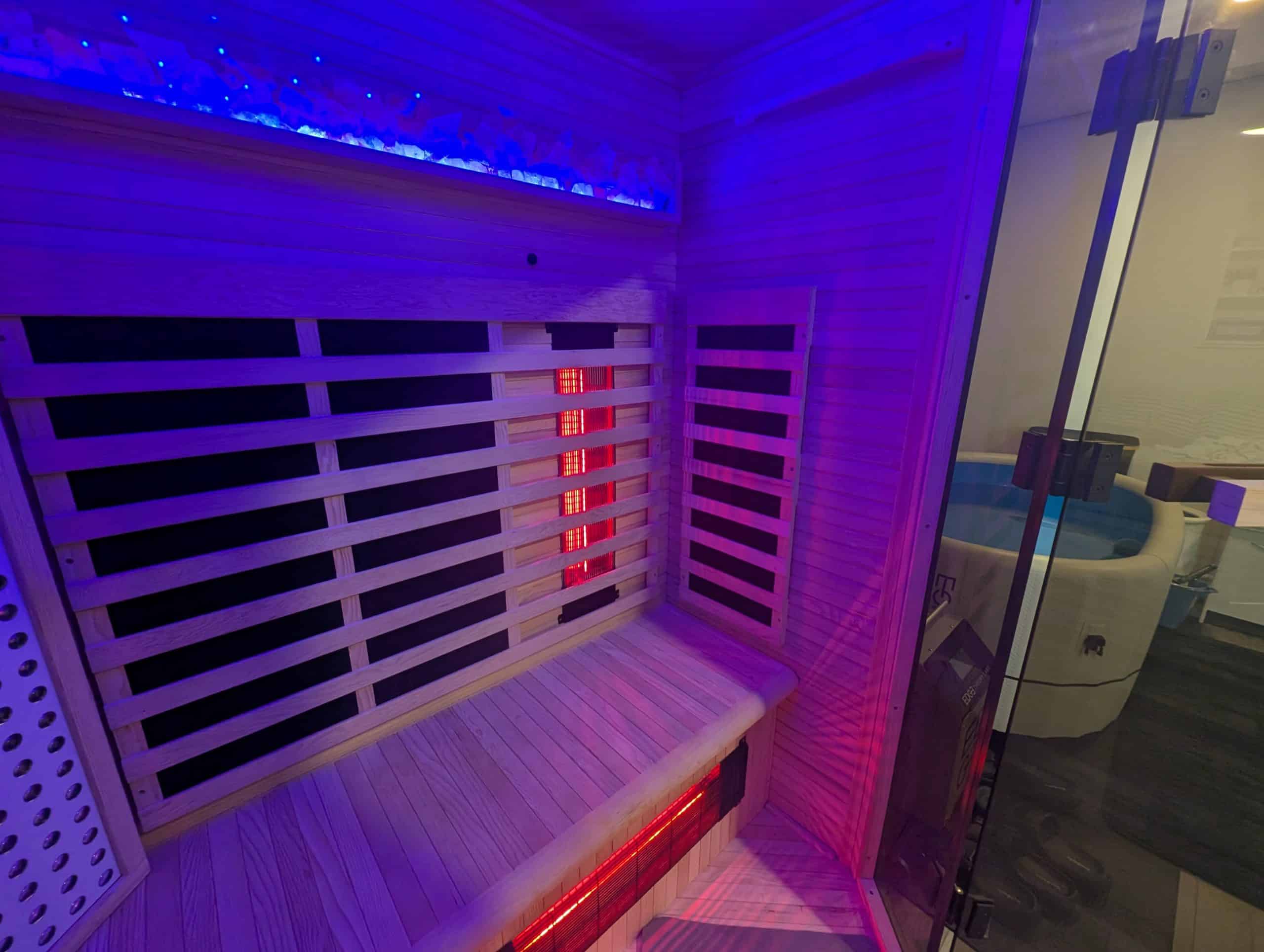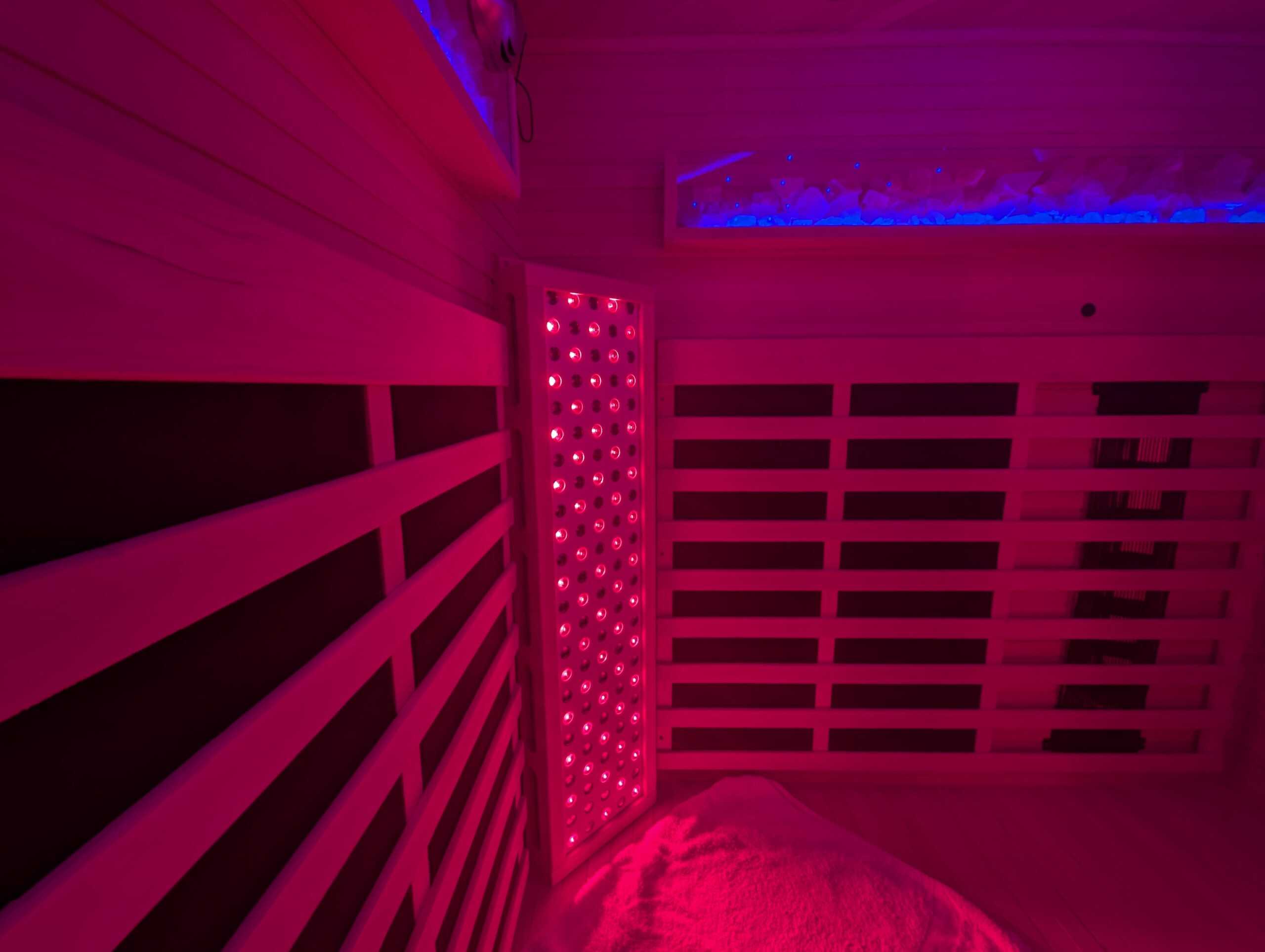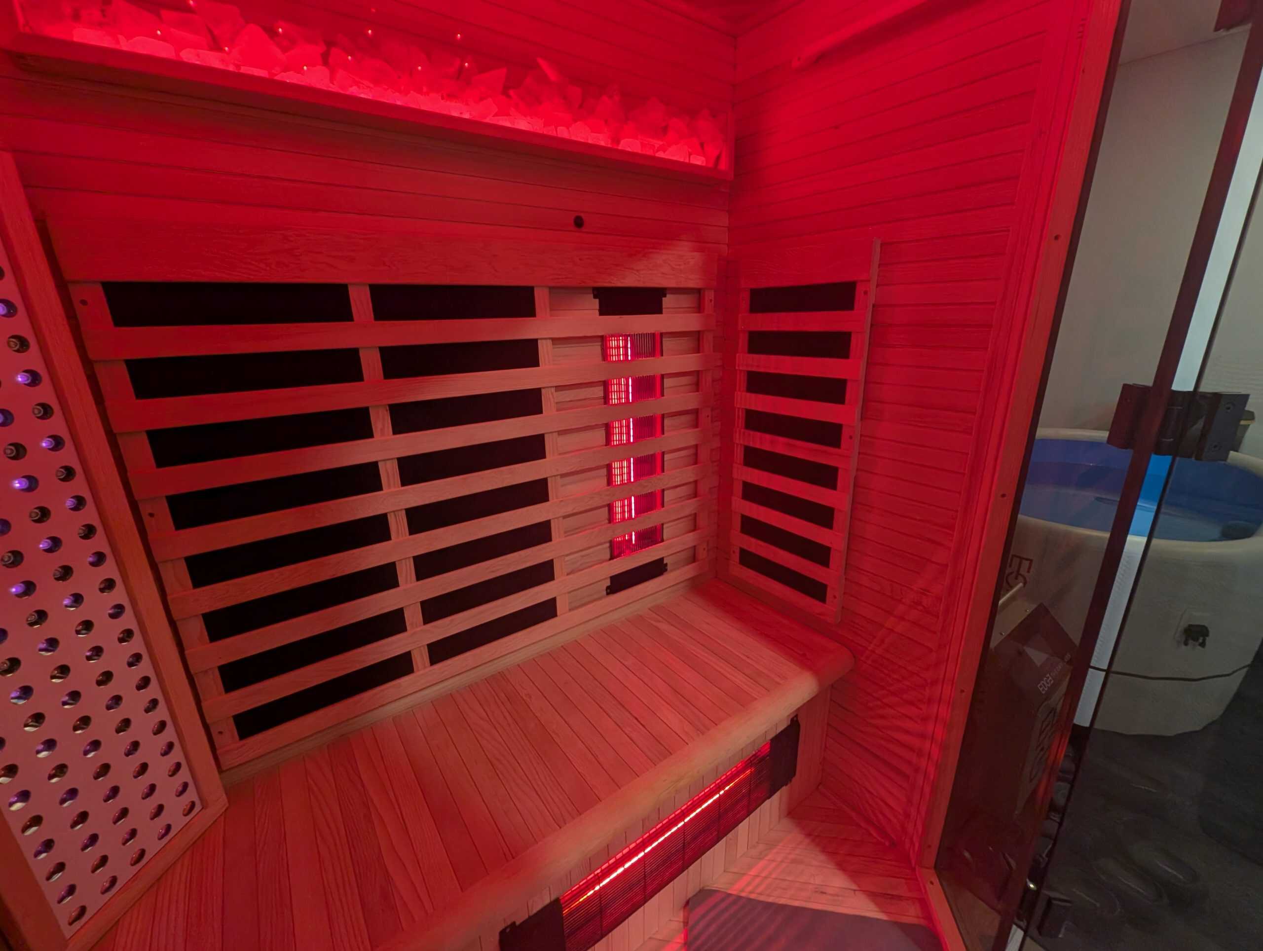 - Red Light Therapy: Penetrates skin to improve cellular energy, promote tissue repair, and reduce pain. Complementary to the sauna’s detoxifying and stress-relieving properties.